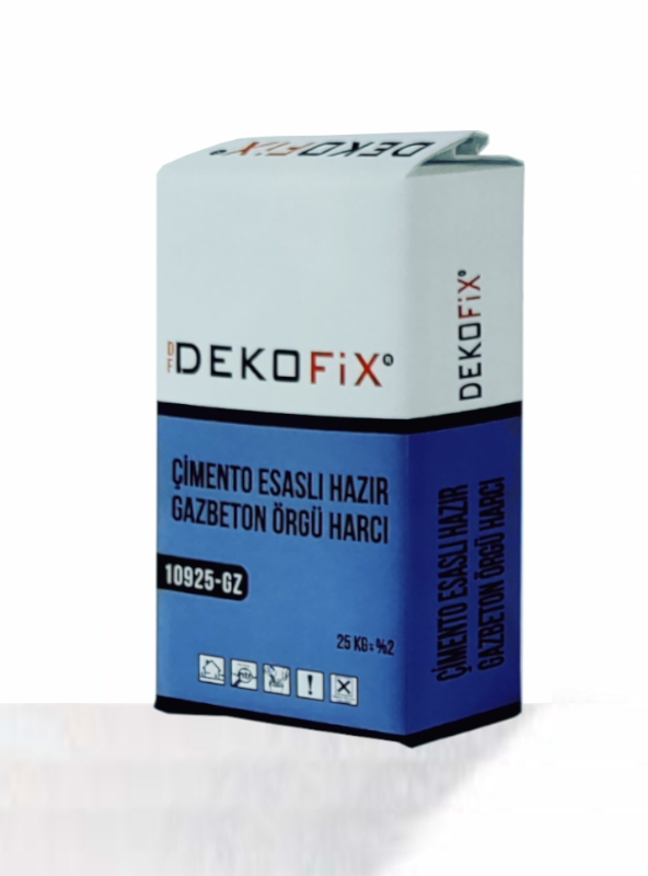 1 torba (25 Kg.) Dekofix Gaz Beton Yapıştırıcısı 6,5 - 7 lt. su ile macun kıvamına gelene kadar karıştırılır. Hazırlanan karışım 5 dk. dinlenmeye bırakılır, sonra tekrar karıştırılarak uygulama yapılır.
